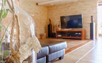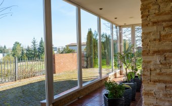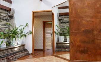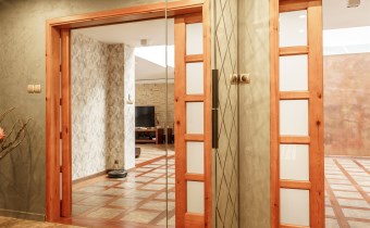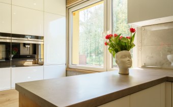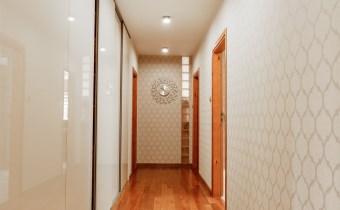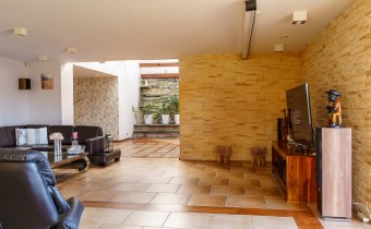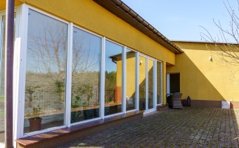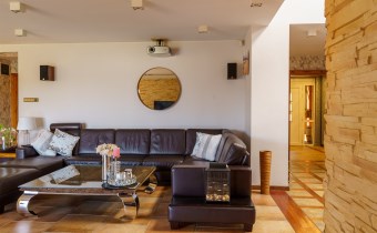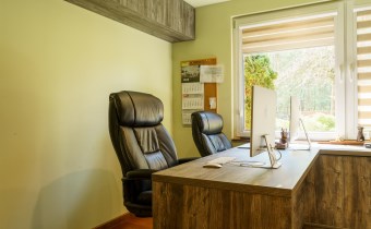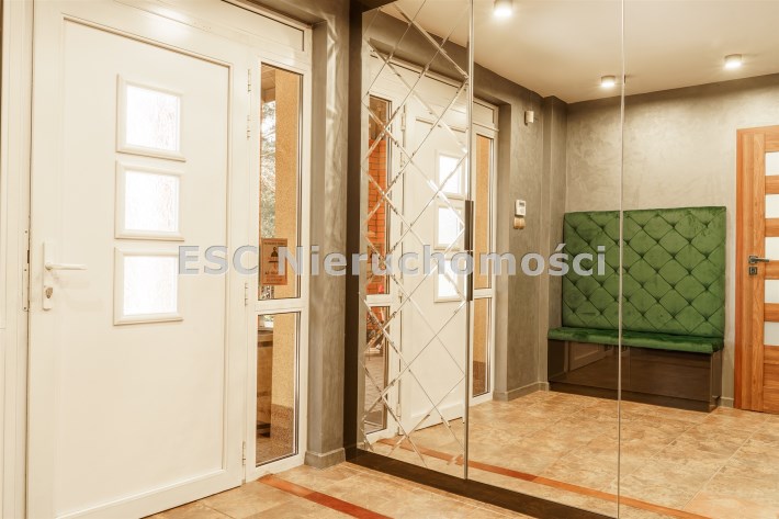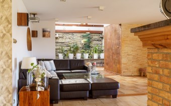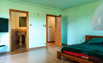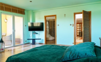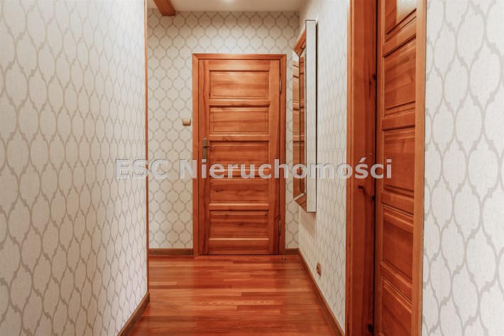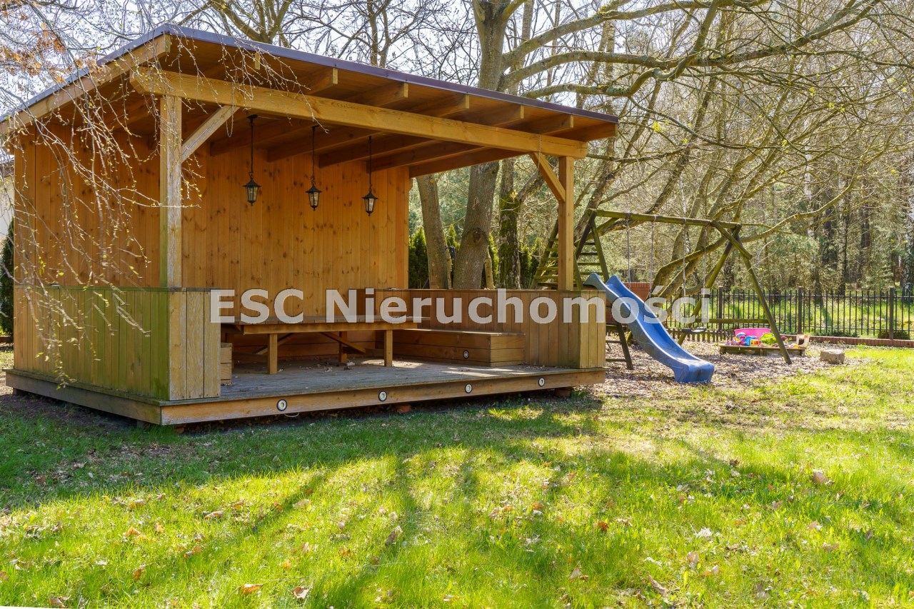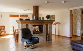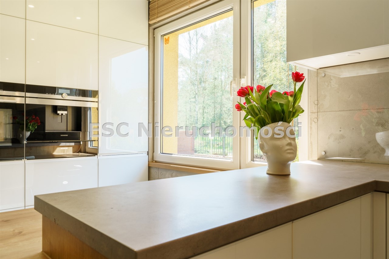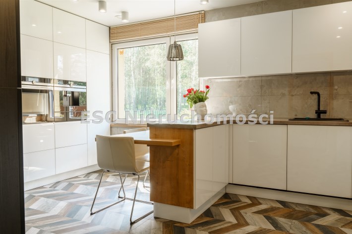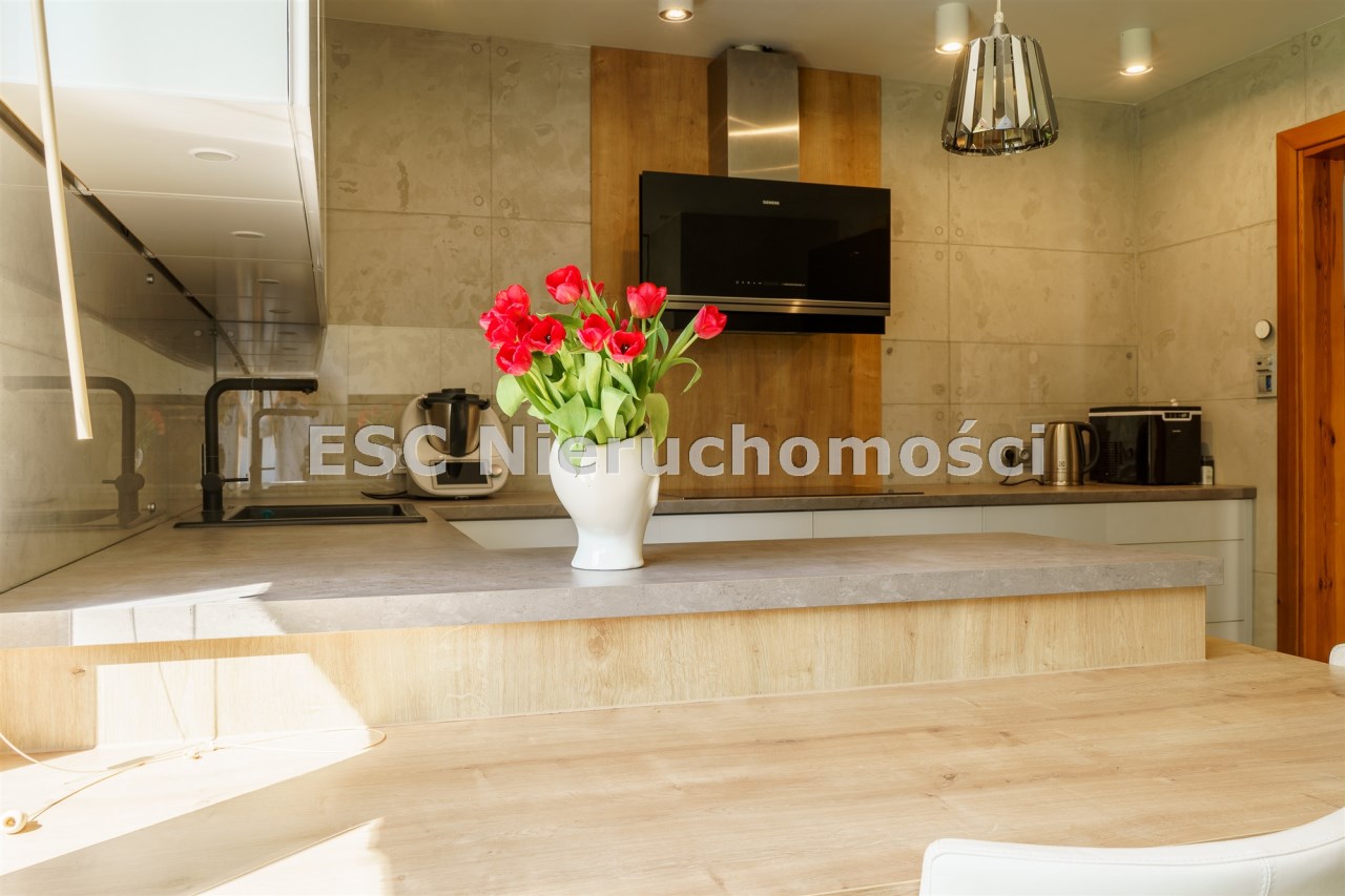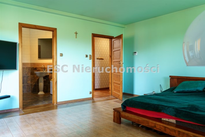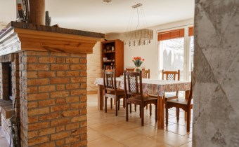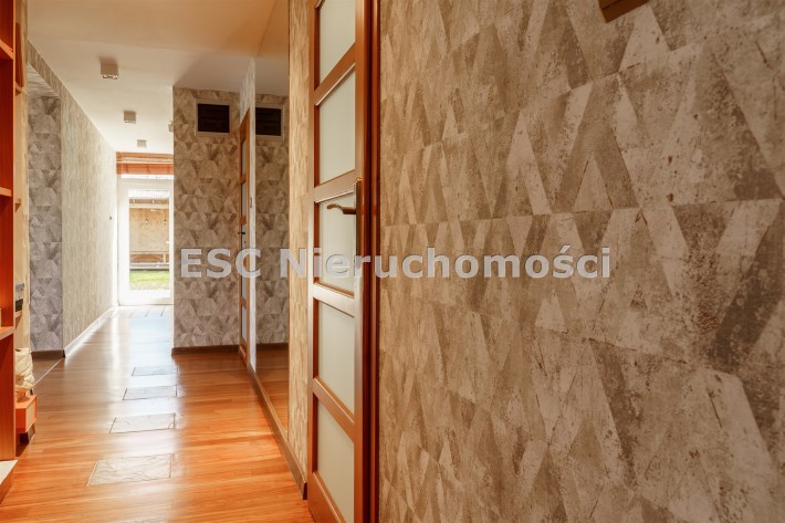 Funkcjonalny układ domu parterowego zapewnia dużą przestrzeń oraz funkcjonalne wykorzystanie całej powierzchni domu. W domu znajduje się bardzo przestronny salon o powierzchni 73 m2, z dwustronnym kominkiem, wyjściem na piękny ogród oraz ogród zimowy o powierzchni 13 m2. Wyjście na ogród zimowy zamykany funkcjonalna roletą bambusową sterowaną na pilota. W salonie znajduje się projektor kinowy z ekranem 3m na 2m, który pozostaje w cenie nieruchomości. Kuchnia bardzo ustawna, jasna i przestronna. W kuchni znajduję się nowoczesna zabudowa kuchenna, która wraz ze sprzętem takim jak: zmywarka, piekarnik elektryczny, płyta indukcyjna, okap, lodówka, ekspres do kawy oraz ciepła szuflada pozostaje w cenie nieruchomości. Wszystkie urządzenia wysokiej klasy firmy Siemens. W kuchnia znajduje się zintegrowany z meblami kuchennymi blat z krzesłami. Dodatkowym atutem na pewno jest spiżarnia, która znajduje się za kuchnią. Na wejściu do domu znajduje się przedpokój o powierzchni ok. 13 m2 zabudowany szafami typu Komandor. Pozostałe pomieszczenia w domu to gabinet o pow. ok. 10 m2, w którym również znajduje się zabudowa mebli wraz z biurkiem do pracy, łazienka o pow. 6 m2, sypialnia o pow.26 m2 z prywatną łazienką o pow. 6,50 m2., 2 pokoje z garderobami o powierzchniach ok. 17 m2 i 20 m2. łazienka przy pokojach o pow. 10m2 z wanną oraz kabiną prysznicową, pomieszczenie gospodarcze o pow. ok. 7,50 m2.W bryle budynku znajduje się podwójny garaż o pow. 57 m2. W korytarzu, który prowadzi do części sypialnianej znajduje się bardzo efektowna ściana z piaskowca ze ściennym wodospadem, który latem powoduje znakomity mikroklimat.