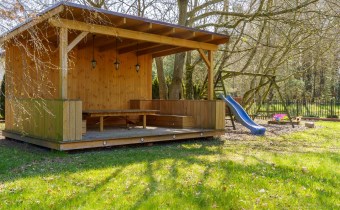 Przy domu piękny ogród, w którym znajduje się altana.