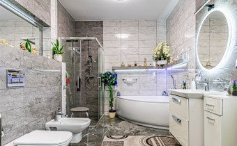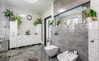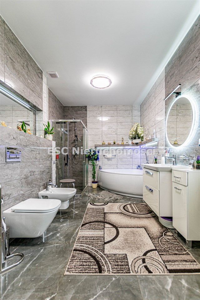 - Pokoju kąpielowego o pow. 13,28 m2 który łączy w sobie funkcje higieniczne z relaksem i odpoczynkiem,