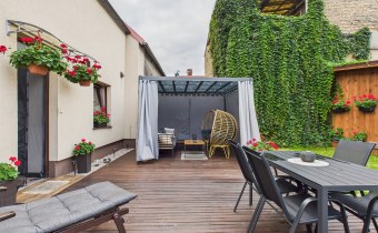 Z drugiej strony działki znajduje się przytulny dom jednorodzinny, w zabudowie szeregowej który zapewnia komfort i prywatność. Do domu przylega przestronny taras, doskonały do relaksu na świeżym powietrzu, stwarza idealne warunki do spędzania wolnego czasu, organizowania spotkań rodzinnych czy wieczorów w gronie najbliższych lub przyjaciół.