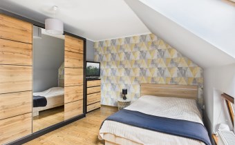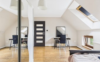 Poddasze zostało zaadaptowane na prywatną część sypialną, oferującą komfort i spokój. Znajdują się tu trzy przytulne sypialnie, każda przestronna. Jest tu także pomieszczenie obecnie wykorzystywane na potrzeby biurowe, oraz pomieszczenie gospodarcze lub miejsce na garderobę. Wnętrza poddasza zostały zaprojektowane z myślą o maksymalnej funkcjonalności, zapewniając komfort użytkowania.