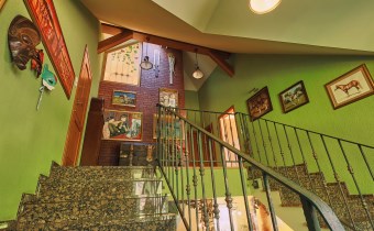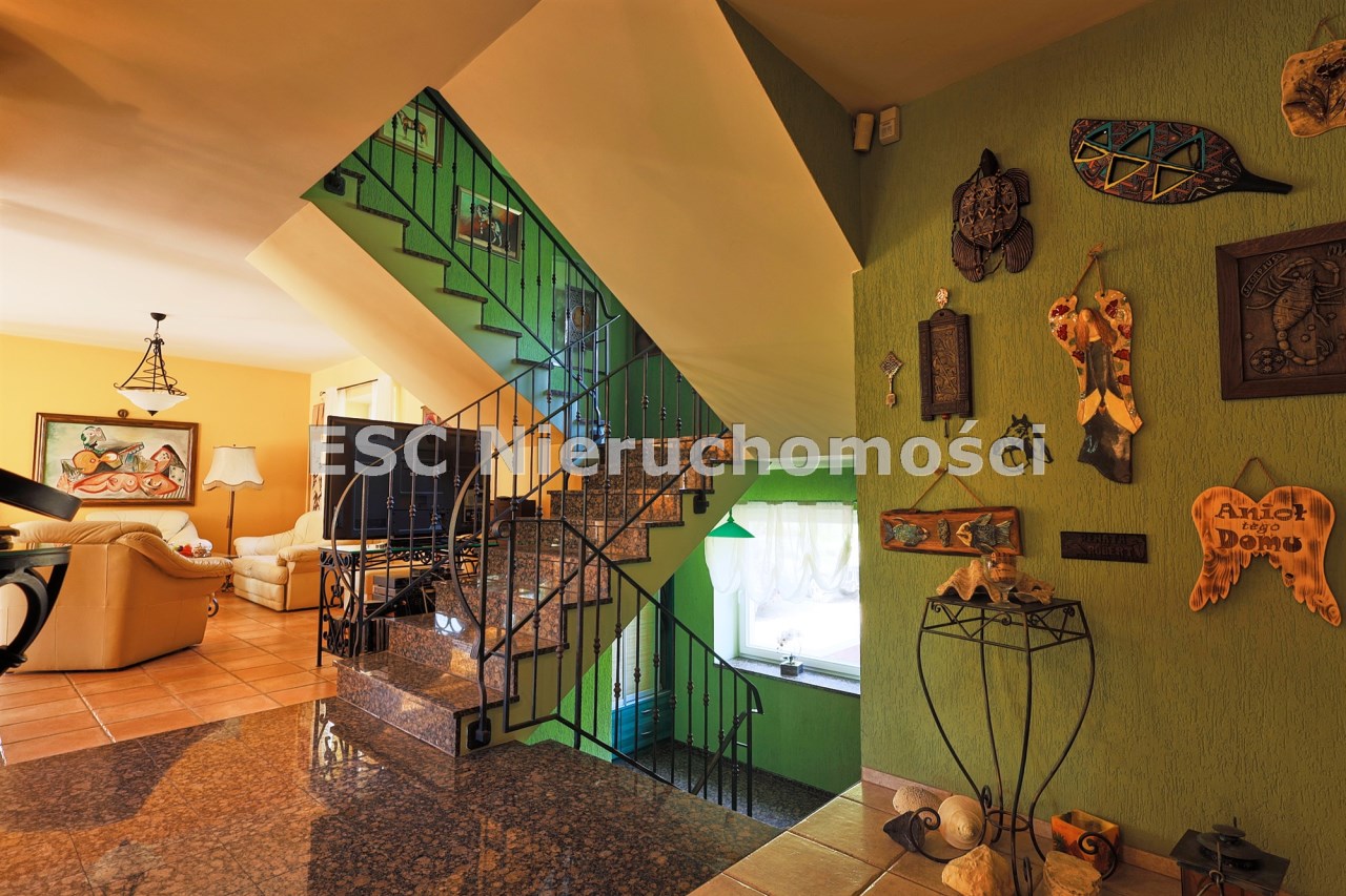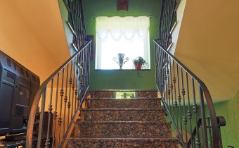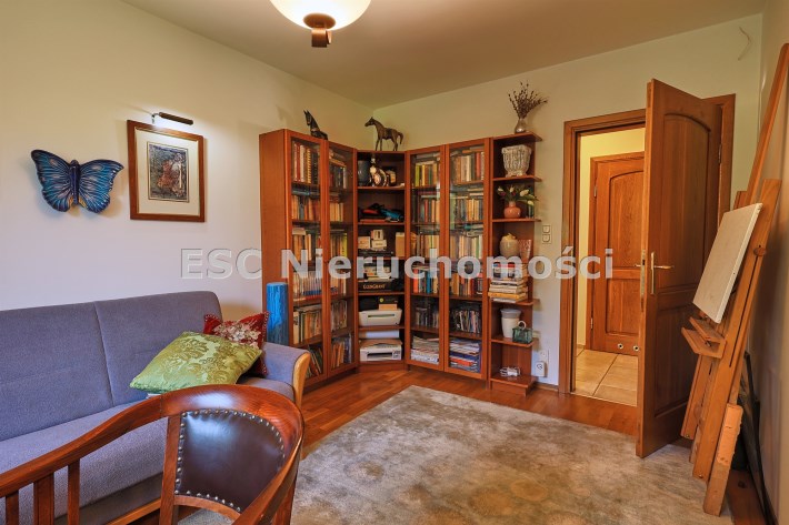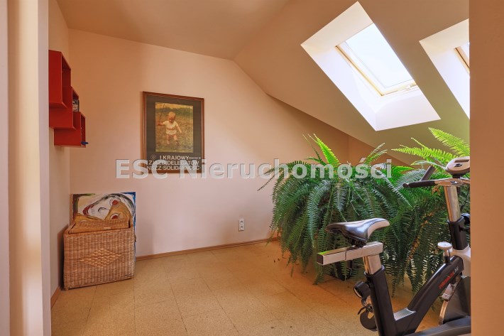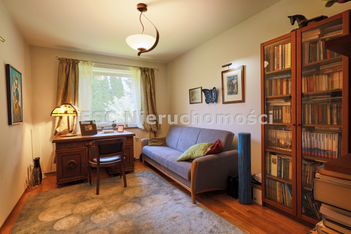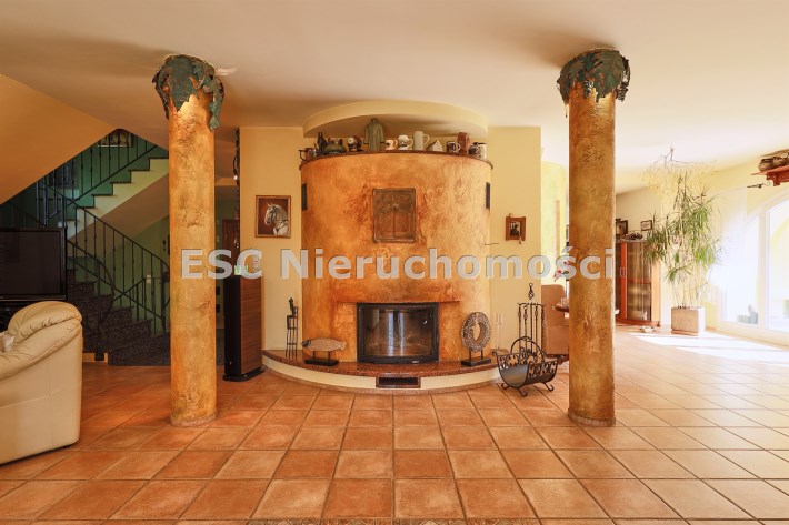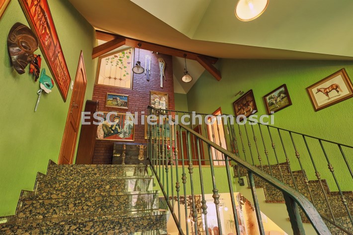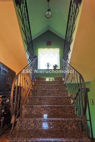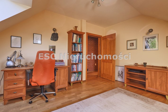 gabinet o pow. 13 m2, przestronny hall ze schodami o pow. ponad 25 m2.