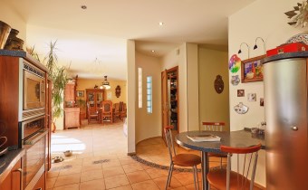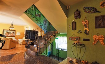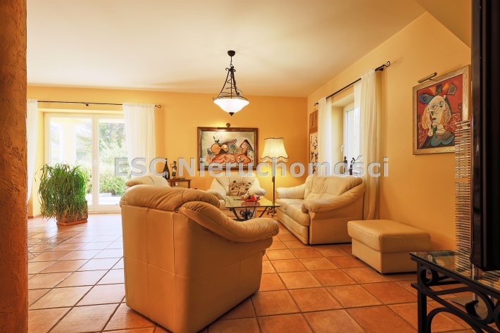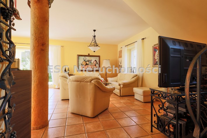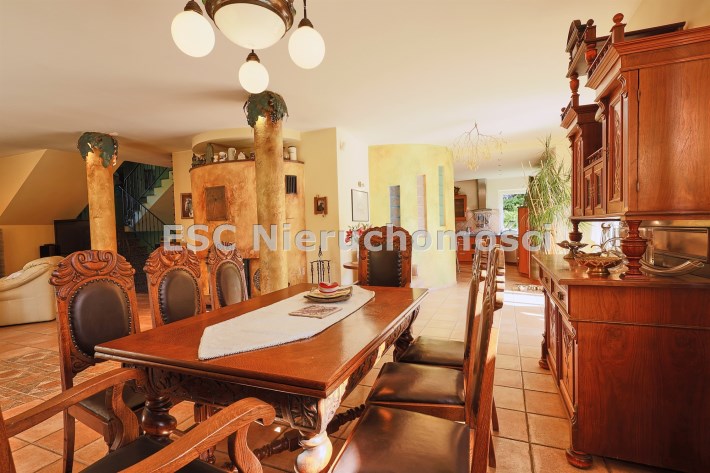 Tarasy zewnętrzne to powierzchnia ok 45 m2. Wysokość budynku ponad 10 m. Okna drewniane. Stolarka wewnętrzna drewniana. Podłogi - panele drewniane (sypialnia korek). Ogrzewanie podłogowe na parterze domu plus łazienka na górze. Duża ilość przemyślanych punktów oświetleniowych umożliwia ekspozycje dzieł sztuki. Balustrady i metalowe elementy dekoracyjne wykonane przez lokalnych rzemieślników nadają wnętrzu niepowtarzalnego charakteru.