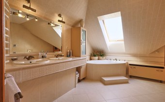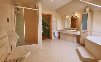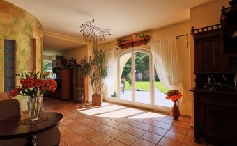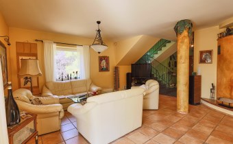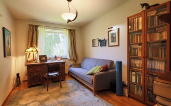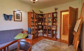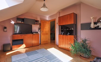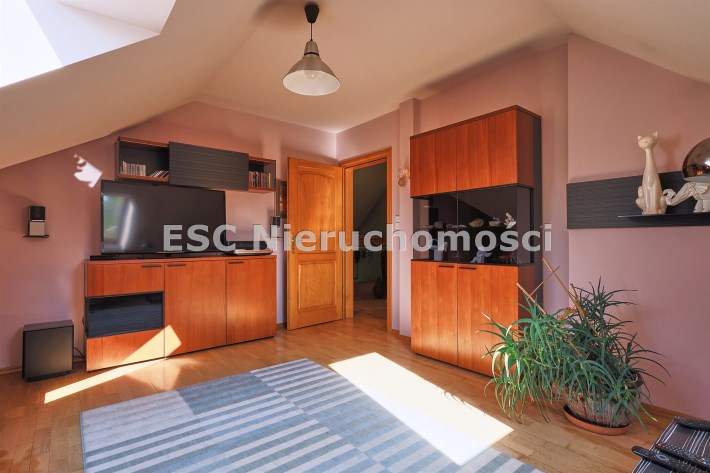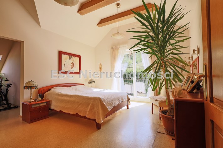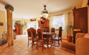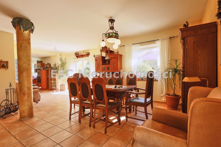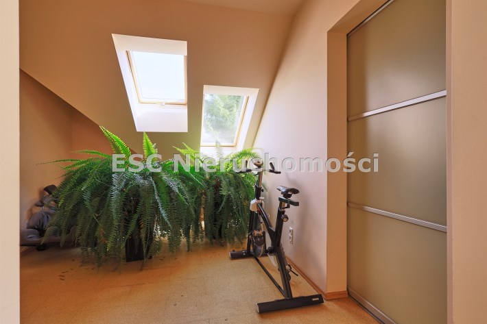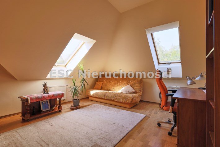 W salonie kominek (rozprowadzanie ciepła w salonie i na poddasze). W cenie domu umeblowanie na górnym piętrze. Duża ilość okien i wysokie sufity oddają wrażenie szczególnej przestronności.