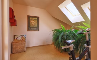 Na piętrze znajdują się trzy pokoje o pow.: 12,31 m2, 19,96 m2, 12,31 m2, 12,52 m2, pokój kąpielowy z sauną (sucha) o pow. 12,42 m 2, komunikacja o pow. 10,40 m2. W pokojach przewidziano schowki, które wykorzystano na