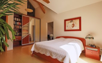 garderoby. Sypialnia z dużym oknem tarasowym z wyjściem na balkon od wschodu.