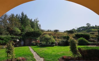 Zadbany ogród z licznymi nasadzeniami, oczko wodne, wieloletni sad i winorośle, wyjątkowe odmiany drzewostanu, podlewanie systemowe (w tym własna studnia głębinowa), wędzarnia, spiżarnia to tylko wybrane atuty tego wielopoziomowego, obszernego ogrodu.