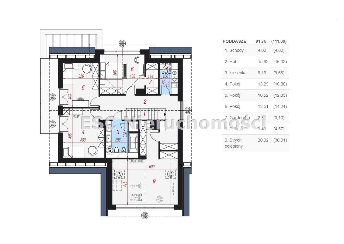 Strych (dodatkowa przestrzeń do przechowywania): 20,92 m²