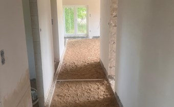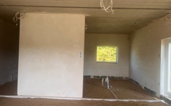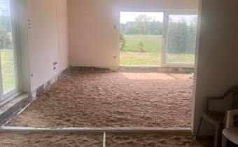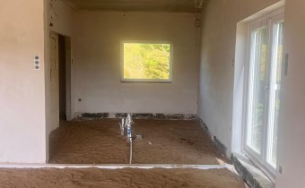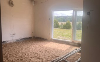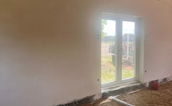 Obecnie wykonano już elektrykę przystosowaną do fotowoltaiki, pompy ciepła, rekuperacji oraz ogrzewania podłogowego (dwa miejsca pomiarów temperatury – przy podłodze oraz na wysokości 1,2 m). Ogrzewanie podłogowe zaprojektowano na pow. ok 120 m2 budynku (wykonano chudziak, pozostawiono piasek do poziomowania instalacji). Wykonana jest też instalacja centralnego odkurzacza, poprowadzona kanalizacja. Sufity przygotowane do montażu sufitów podwieszanych (wysokość pomieszczeń to ponad 2,80 m). Dach docieplony warstwą ponad 30 cm styropianu. Rodzaje ogrzewania: pompa ciepła oraz piec na paliwo stałe. Zainstalowano fotowoltaikę nad częścią garażową. Jest też przewidziana możliwość dobudowania lekkiej konstrukcji szkieletowej na piętrze pod fotowoltaikę nad całym budynkiem lub jako pomieszczenia widokowego wraz z tarasem.