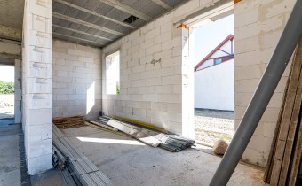 DOM JEDNORODZINNY, W ZABUDOWIE BLIŹNIACZEJ W STANIE SUROWYM OTWARTYM + OCIEPLENIE