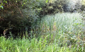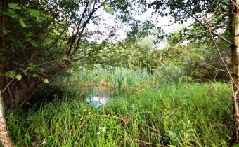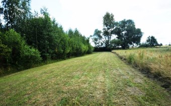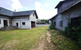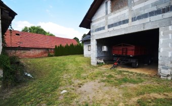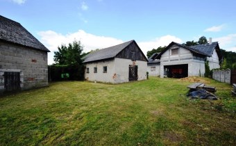 Za domem znajdują się dwa murowane budynki gospodarcze oraz mały staw.