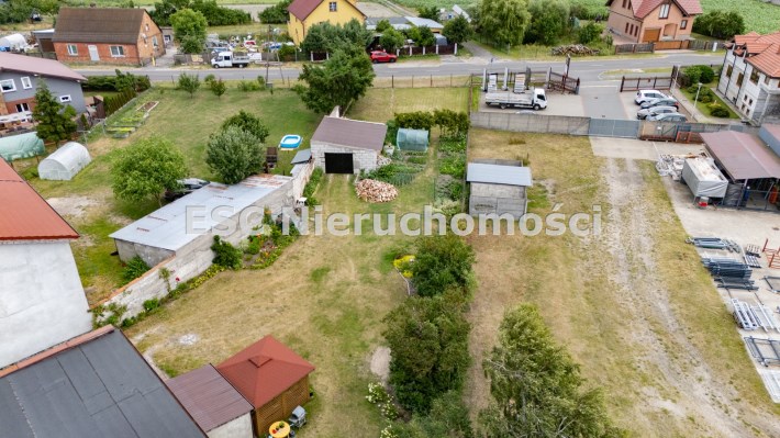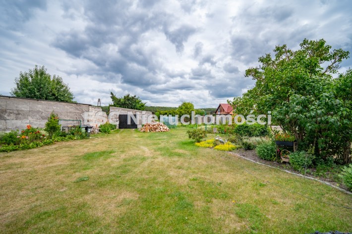 Działka o pow. 1102m2 w całości ogrodzona. Na terenie działki znajduje wolnostojący garaż. Wjazd do nieruchomości z dwóch stron (możliwość podziału)