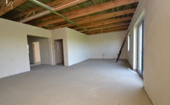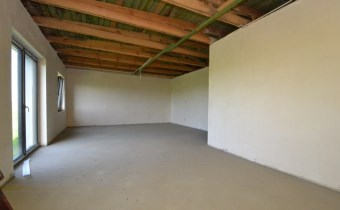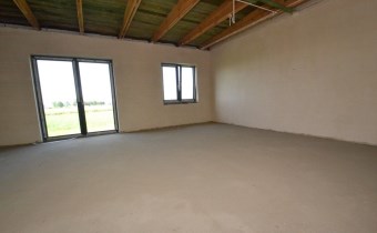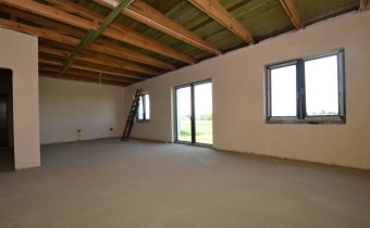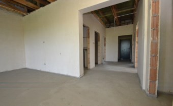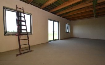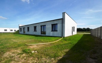 Parterowy, murowany z pustaka ceramicznego, budynek ocieplony (styropian 20cm), dach płaski (ocieplony, pokryty papą i blachą). Okna PCV 3 szybowe. Strop konstrukcji drewnianej ocieplony wełną mineralną, sufity z płyty podwieszanej GK (w trakcie wykonywania)