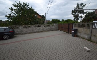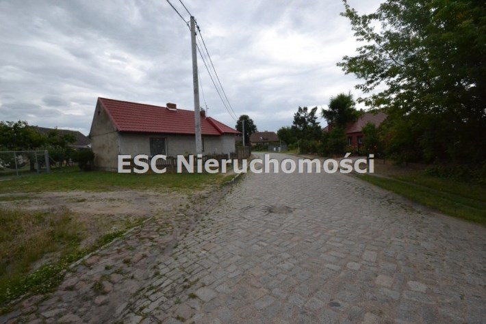 Działka ogrodzona, częściowo utwardzona kostką brukową
