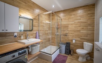 salon 18m3; aneks kuchenny 8m2; łazienka 6,7m2; pokoje (8,5m2; 10m2; 13,6m2; 6,5m2; 6,5m2), korytarz 10m2, wiatrołap 3,3m2