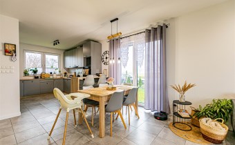 - salonu połączonego z jadalnią o pow. 29,55 m2 idealny do spędzania czasu z rodziną,