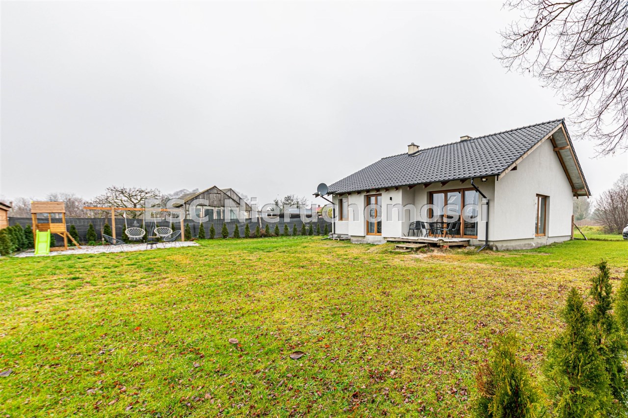 Budynek mieszkalny jednorodzinny, parterowy o powierzchni użytkowej 104,74 m2 usytuowany na działce o pow. 747 m2.