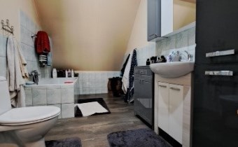 Podłogi natomiast wymienione były na panele około 4 lata temu. ¾ budynku jest dodatkowo ocieplona od środka, nie wpłynęło to jednak na znaczne pomniejszenie pomieszczeń.