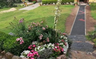 Działka-1457m2/na której są posadowione budynki/zadbana,w pełni ogrodzona,z licznymi nasadzeniami,z wiatą do grillowania-odpoczynku.