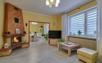 - salon o pow. 22,10 m2 z kominkiem z rozprowadzeniami