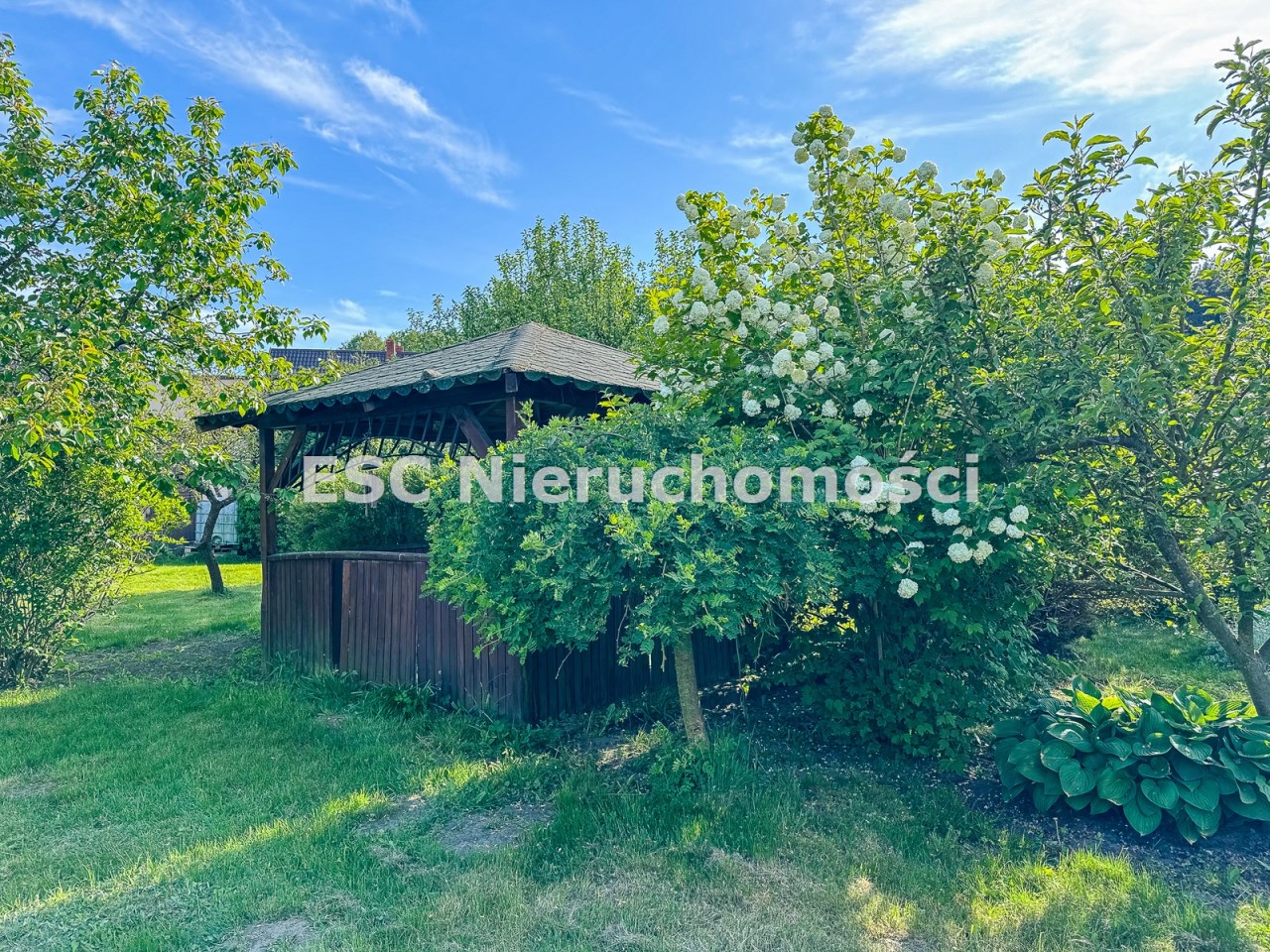 Duży ogród o powierzchni około 900 metrów kwadratowych zachwyca dojrzałymi nasadzeniami drzew i krzewów, altanką, szklarnią oraz miejscem na własny warzywniak. Dodatkowo, zainstalowany zbiornik na wodę deszczową o pojemności 1000 litrów pozwala na oszczędne korzystanie z zasobów naturalnych. Dzięki wysokiemu żywopłotowi, działka tworzy oazę ciszy i spokoju, idealną do wypoczynku i relaksu.