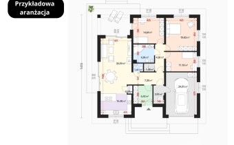 - powierzchnia całkowita: 144,53 m² (część mieszkalna – 115,19 m² + pralnia, kotłownia i garaż – 29,34 m²)