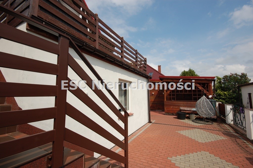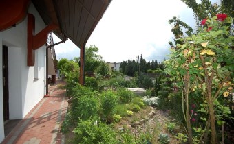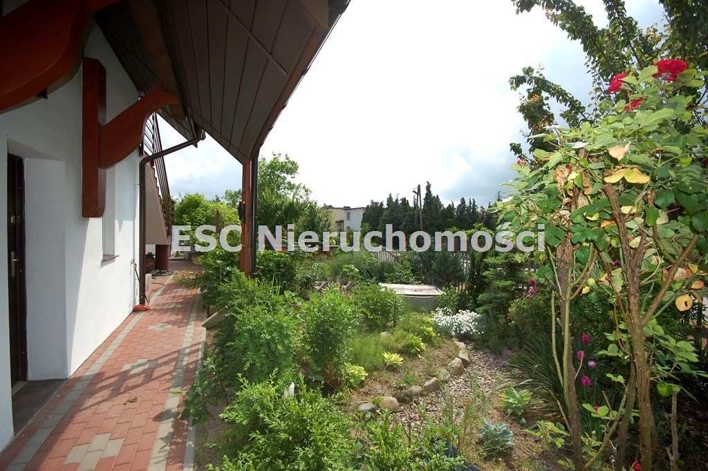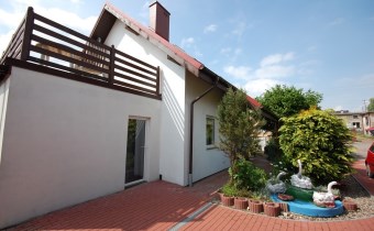 Działka bardzo zadbana, liczne nasadzenia krzewów, kwiatów, drzew. Wyodrębniony warzywnik. Wjazd na działkę do garażu i opaska wokół budynku wykonana w kostce brukowej. Ogrodzenie częściowo betonowe, częściowe metalowe-kute.