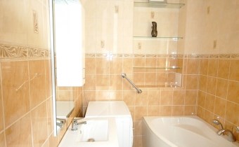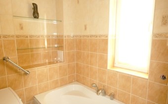 - łazienka z wc ok 4,20 m2, podłoga w terakocie, ściany w pełnej wysokości w glazurze, wanna narożnikowa .
