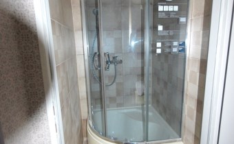 - pomieszczenie z prysznicem (wejście z pokoju) ok 1,40 m2, zabudowa prysznicem z wysokim brodzikiem, ściany glazura, podłoga terakota.