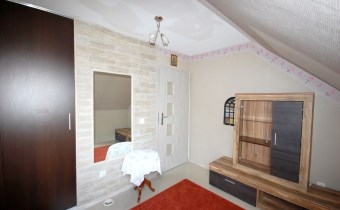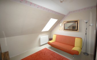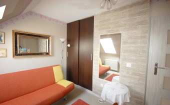 - sypialnia ok 13,40 m2, (użytkowa ok 10,80 m2), na podłodze terakota, ściany tapeta + panele ścienne, okno połaciowe.