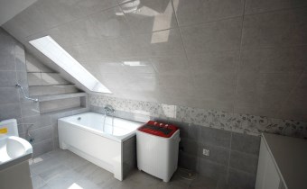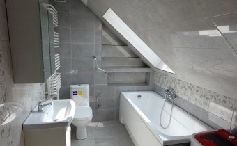 - łazienka ok 7,25 m2 (użytkowa ok 4,30 m2 ), podłoga terakota, glazura na całości ścian, wanna, okno połaciowe.