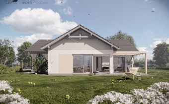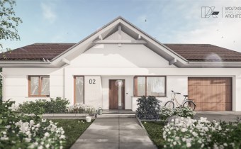 Funkcjonalny dom jednorodzinny z garażem o powierzchni 115,40 m2, usytuowany na działce o pow. 1089 m2.