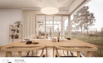 Dom zaprojektowany tak, aby sam oszczędzał energię. Pompa ciepła, możliwość zamontowania paneli fotowoltaicznych. Dodatkowym atutem jest fakt, że dom znajduje się na nowo powstającym osiedlu domów jednorodzinnych, w którym wszystkie domy będą posiadały pompy ciepła.
