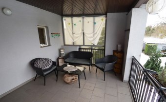 Dom został zaprojektowany jako dwa odrębne mieszkania, które łączy wewnętrzna klatka schodowa – idealne rozwiązanie dla rodzin wielopokoleniowych lub osób szukających nieruchomości z możliwością najmu części domu.