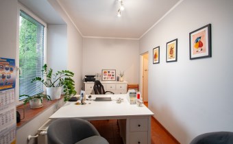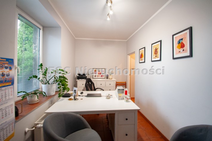Budynek funkcjonalnie składa się z następujących pomieszczeń: biura, 5 pokoi, korytarzy, wiatrołapu, łazienki, skrytki, kuchni, jadalni, wc, pralni i kotłowni. Na poddaszu dodatkowo pokój.