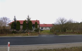 Drugi z domów zlokalizowany na przedmiotowej działce zaprojektowany jako nieruchomość mieszkalno - usługowa wybudowany do stanu surowego. Dach pokryty blachodachówką, wewnątrz - część ścianek działowych oraz część okien.