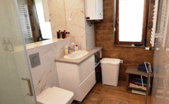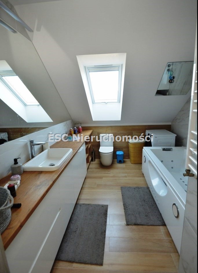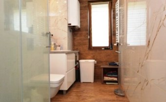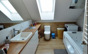 - 2 łazienki - łazienka na parterze wypozażona w duży prysznic (długość 120cm), łazienka na poddaszu w wannę z hydromasażem, meble łazienkowe pozostają w cenie.