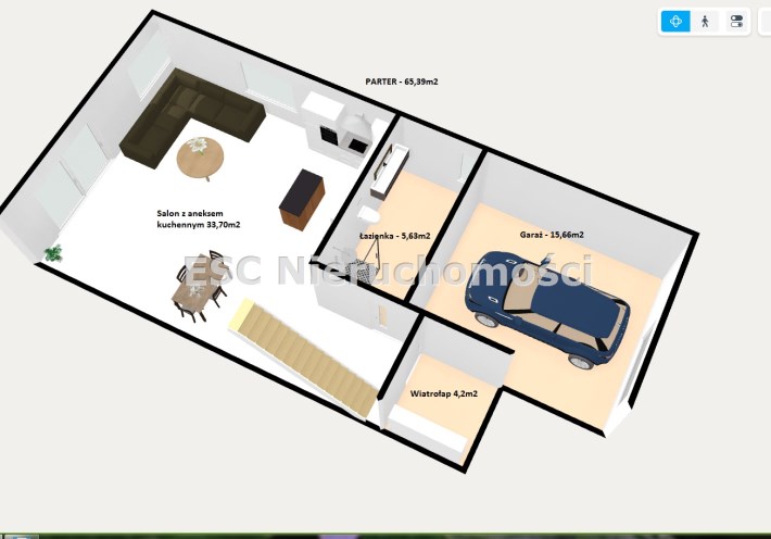 - Garaż - w bryle budynku z brama na pilota