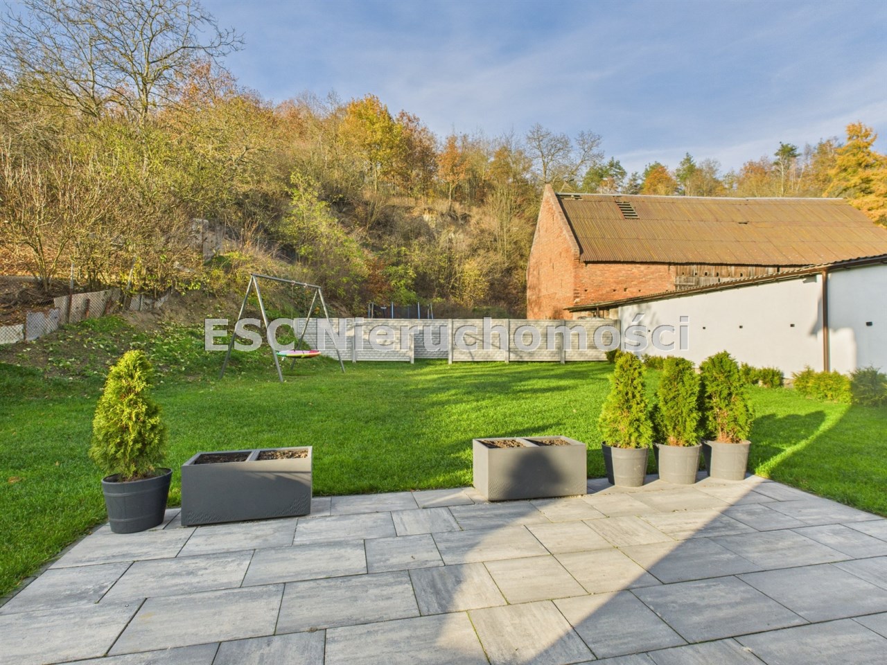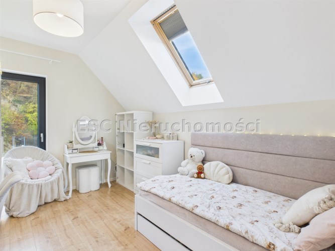 Działka: 3 800 m² – teren zróżnicowany, z dużą skarpą, dający duże możliwości aranżacyjne