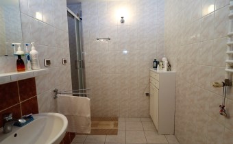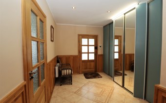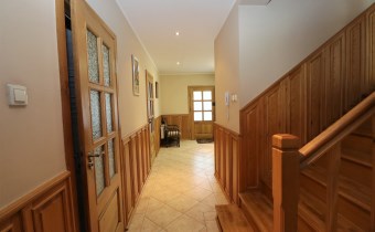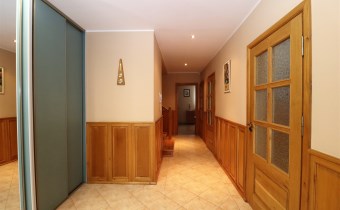 Parter: 2 pokoje, przestronny korytarz z dużą zabudowaną szafą, łazienką oraz zejściem do piwnicy i garażu ok. 20m2. W piwnicy znajduje się dodatkowe pomieszczenie z piecem dwufunkcyjnym.