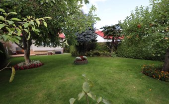 Teren dookoła domu zagospodarowany, część wyłożona kostką brukową. Przy domu znajduje się również ogródek warzywny.