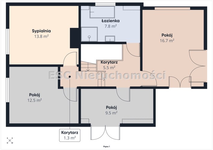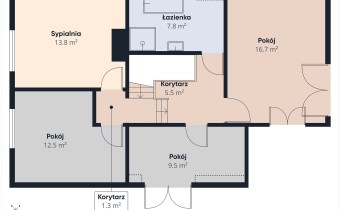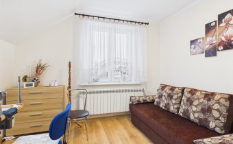 Ściany gipsowane/malowane, na podłodze panele oraz terakota. Stolarka okienna PCV
