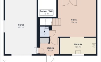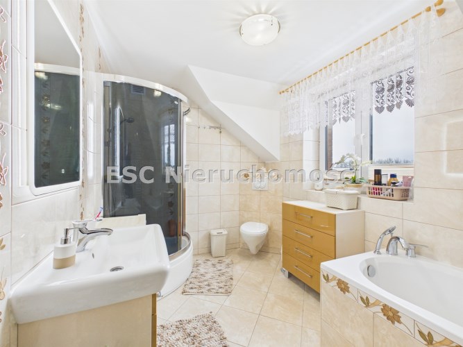 W bryle budynku garaż o pow. 30m2 oraz kotłownia 4,40m2. Brama do garażu elektrycznie otwierana