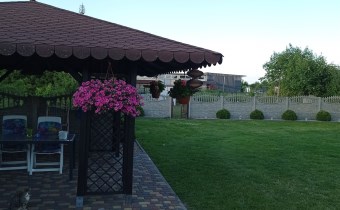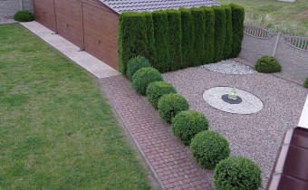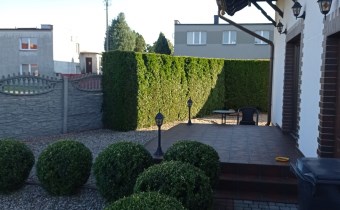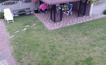 Działka o pow. 1103m2 zagospodarowana, z rekreacyjną wiatą oraz dodatkowo wolnostojącym dwustanowiskowym garażem (budynkiem gospodarczym). Cześć działki wyłożona polbrukiem, cześć z zielonymi nasadzeniami