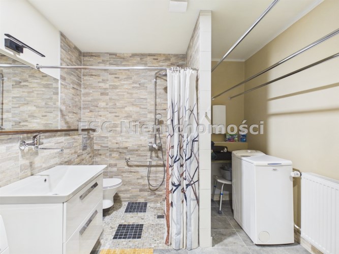 Dom oferuje 3 łazienki i 2 kuchnie, co zapewnia pełną wygodę i niezależność domownikom.