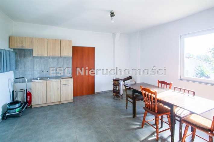 Budynek mieszkalny o pow. ok. 176 m2, murowany, parterowy, częściowo podpiwniczony z dużym strychem., Część socjalna dla pracowników posiada osobne wejście. Nieruchomość wymaga remontu.