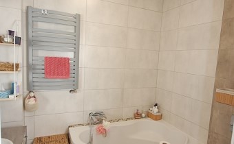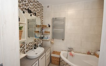 5.Łazienka-4,10m2 podłoga gres,ściany glazura,wanna narożnikowa,duże lustro