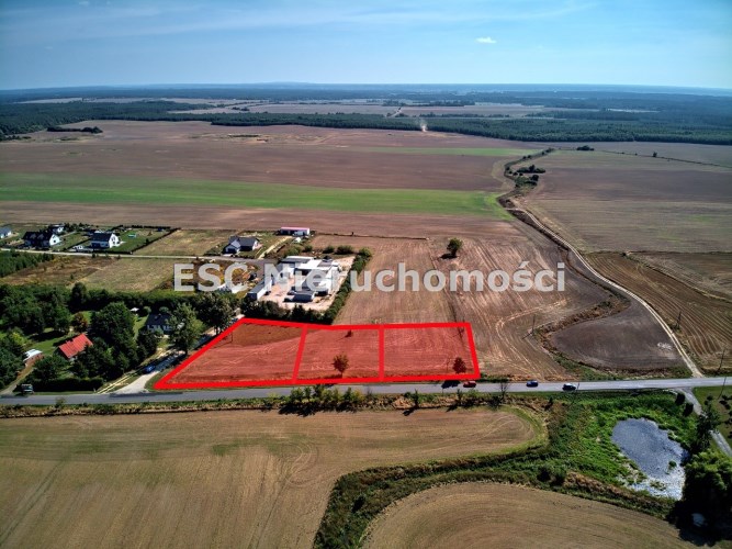 Tytułem oferty jest działka w kształcie prostokąta, płaska położona na obrzeżach miejscowości.