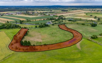 Teren wyróżnia się niezwykłymi walorami przyrodniczymi – otoczony zielenią, z naturalnym zbiornikiem wodnym, idealny dla osób ceniących ciszę, spokój i kontakt z naturą. Działka ma nieregularny kształt, charakterystyczny dla dawnych koryt rzecznych, co nadaje jej niepowtarzalny klimat.