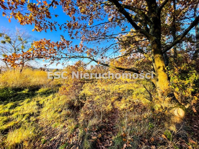 Nieruchomość w kształcie prostokąta, teren pagórkowaty.